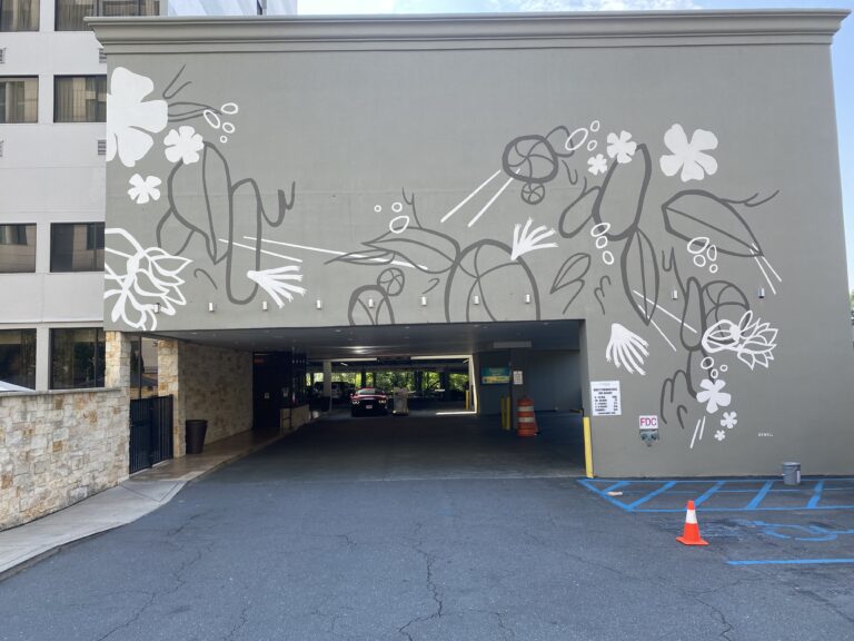 This Fairfield Marriott Uptown Charlotte mural showcases native flora, creating a warm, welcoming garage entrance for guests, visitors, and staff alike.